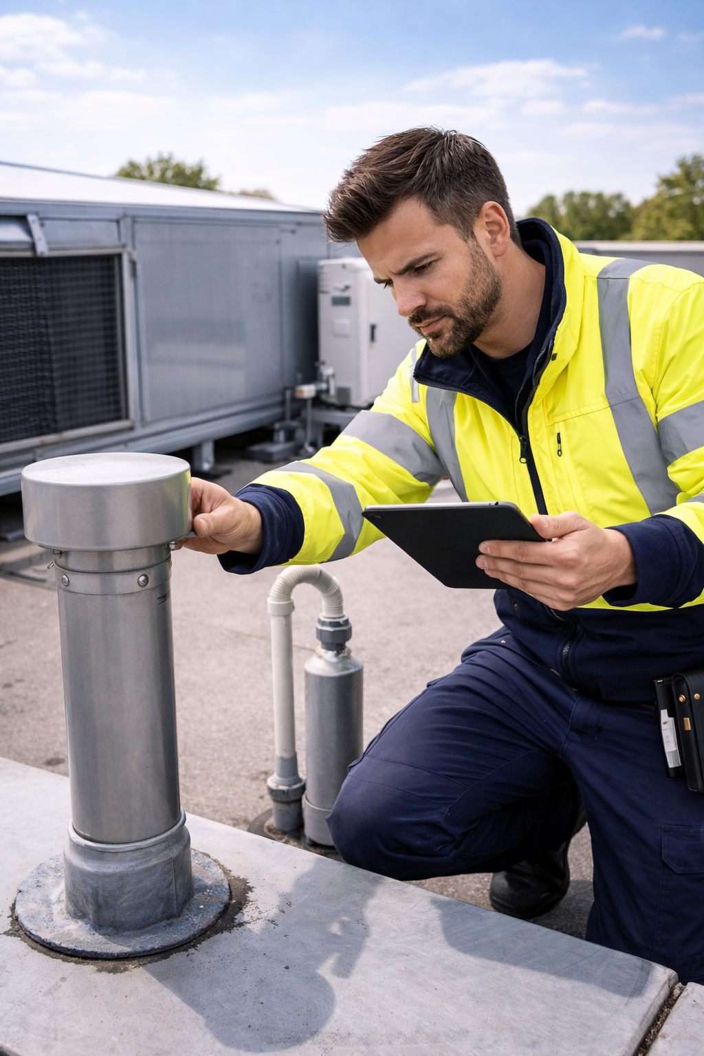 Überprüfung von Durchdringungen, Lüftungsanlagen und technischen Installationen – besonders kritische Punkte bei Industrieobjekten.